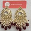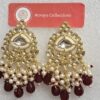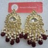 Traditional Kundan Pearl Drop Earrings, Gold-Plated, Maroon Beads